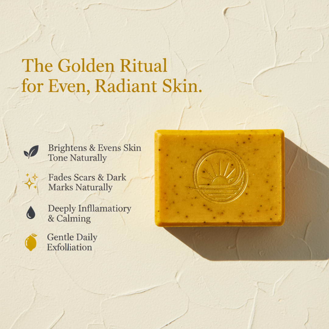 The Terraura Radiance Bar blends Turmeric — known for centuries for its healing warmth — with Kojic Acid, a science-backed brightening agent, to gently fade scars and dark spots to restore your even tone and give your confidence back.