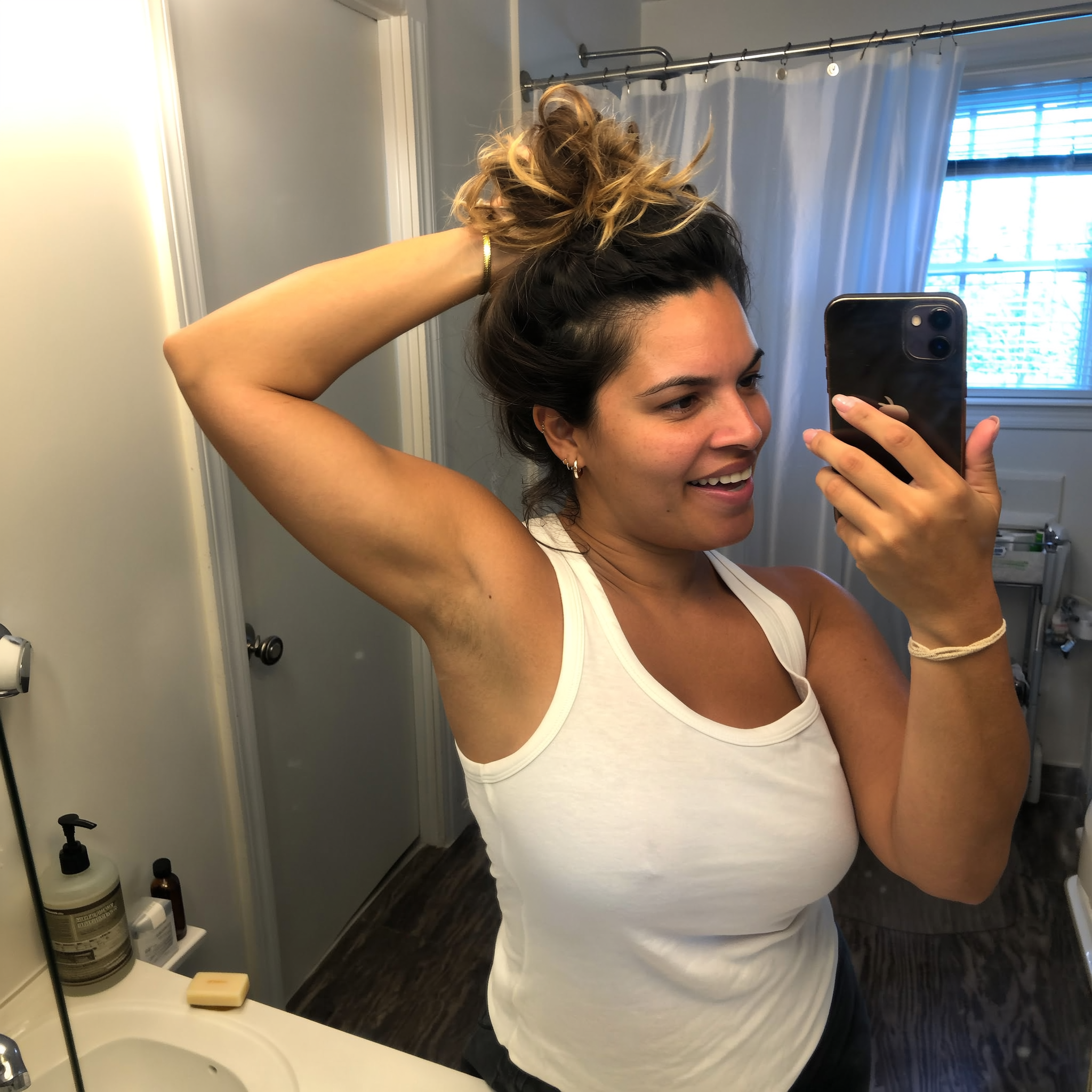 "My underarms were so dark from years of shaving and deodorant staining. I was embarrassed to raise my arms or wear tank tops. After using this soap daily for 7 weeks, they're at least 70% lighter! I cried happy tears when I put on a sleeveless dress for the first time in years. Thank you!!"