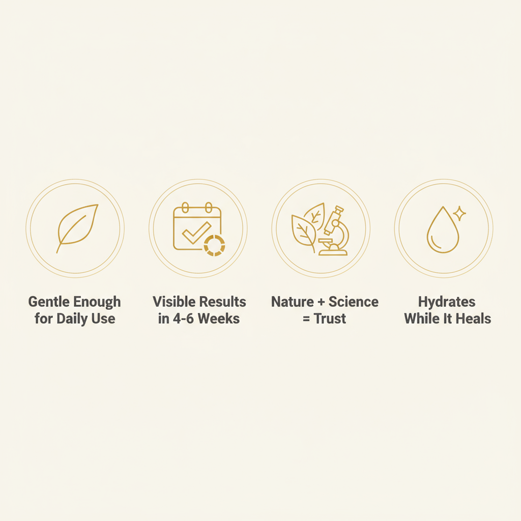 Unlike single-action products, Terraura addresses both texture and tone — the two things that make scars and dark spots so stubborn.