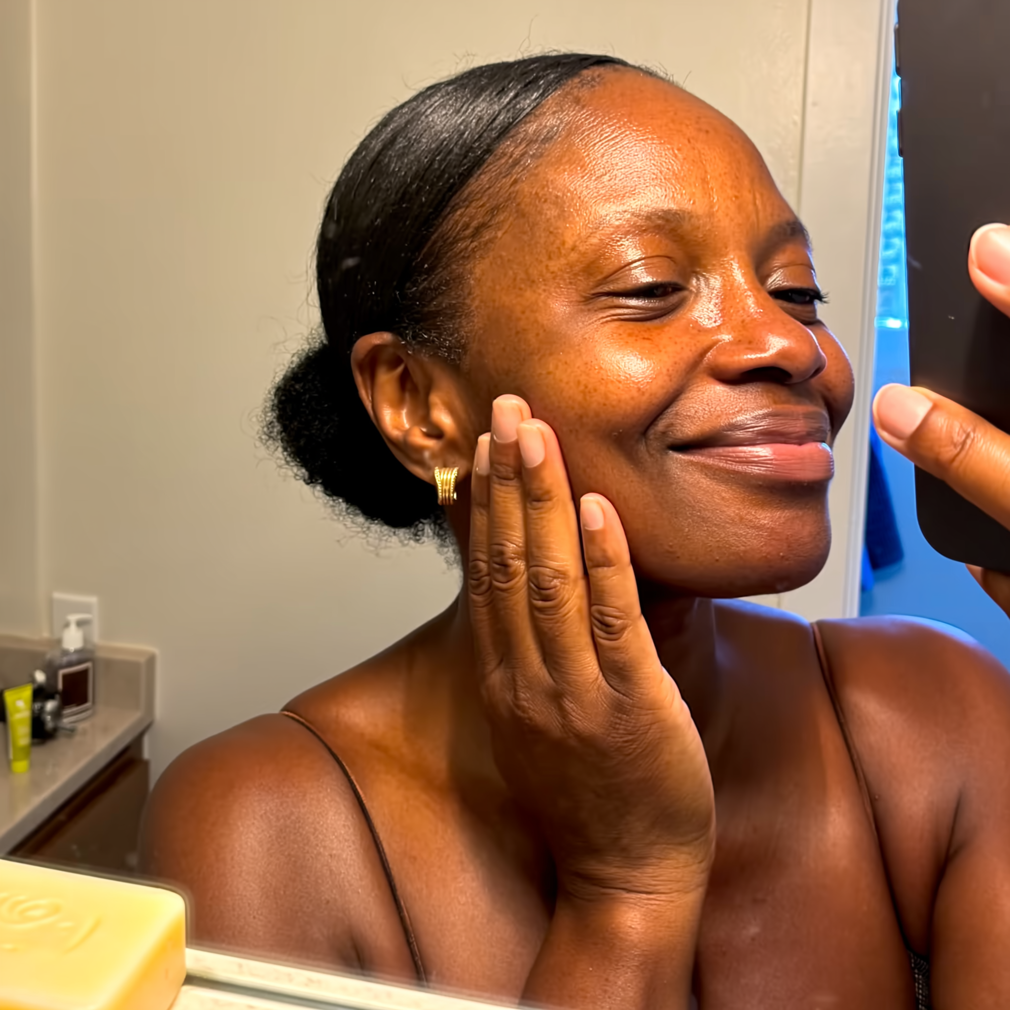 There's something calming about the routine now. The golden color, the light scent, how soft it leaves my skin—it feels like self-care, not just another product. And it's working. My cheeks are smoother and brighter every week. This soap makes me feel taken care of.